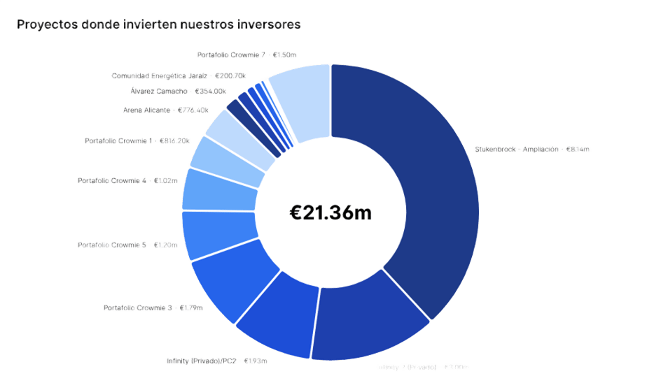 Aquí puedes ver la distribución del capital invertido por nuestros inversores en cada proyecto: