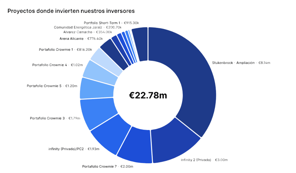 Aquí puedes ver la distribución del capital invertido por nuestros inversores en cada proyecto: